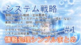今回は,情報処理技術者試験の過去問(システム戦略)を集めて,シンプルにまとめてみました。みなさん,どのくらい解けましたか?はじめは難しく感じると思いますが,繰り返し解くことにより,少しずつ理解できるようになると思います(8割以上(できれば9割以上)解けるようになるまで頑張りましょう)。また,解けるようになっても時間が経つと忘れることもありますので,たとえば,1週間後とか,1か月後とかに,また,やってみてください。
