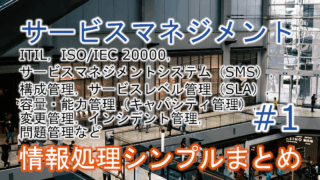 基本情報技術者試験など情報処理技術者試験を受験する方にとっては必須の,サービスマネジメントについてシンプルにまとめています。はじめに,サービスマネジメントの概要とITIL(サービスストラテジ,サービスデザイン,サービストランジション,サービスオペレーション,継続的サービス改善),ISO/IEC 20000(JIS Q 20000,ITSMS,組織の状況,リーダーシップ,計画,SMSの運用,パフォーマンス評価,改善,SMSの支援)の説明をし,その後,サービスマネジメントシステム(SMS)(計画,運用(サービスポートフォリオ(サービスの計画(サービスの要求事項),サービスカタログ管理(サービスカタログ),資産管理(アセットマネジメント,ライセンスマネジメント),構成管理(CI(構成品目))),関係及び合意(事業関係管理,サービスレベル管理(SLM)(SLA),供給者管理),供給及び需要(サービスの予算業務及び会計業務(TCO(総所有費用)逓減課金方式),需要管理,容量・能力管理(キャパシティ管理)),サービスの設計,構築及び移行(変更管理,リリース及び展開管理(一斉移行方式,段階的移行方式,並行移行方)),解決及び実現(インシデント管理(エスカレーション(機能的エスカレーション,階層的エスカレーション)),サービス要求管理,問題管理),サービス保証(サービス可用性管理,サービス継続管理(BCP(事業継続計画),BCM(事業継続管理)),情報セキュリティ管理)),パフォーマンス評価(監視,測定,分析及び評価,内部監査,マネジメントレビュー,サービスの報告),改善(不適合及び是正処置,継続的改善(CSF(重要成功要因),KPI(重要業績評価指標))),サービスマネジメントシステム(SMS)の支援)と,サービスの運用(システム運用管理(機能性,使用性,性能,資源の利用状況,信頼性,安全性とセキュリティ,運用者の作業負担,監視ツール,運用支援ツール),スケジュール設計,バックアップ,サービスデスク(ヘルプデスク)(ローカルサービスデスク,バーチャルサービスデスク,フォロー・ザ・サン))を説明しています。確実に点を取れる分野ですから,丁寧にしっかり取り組みましょう。